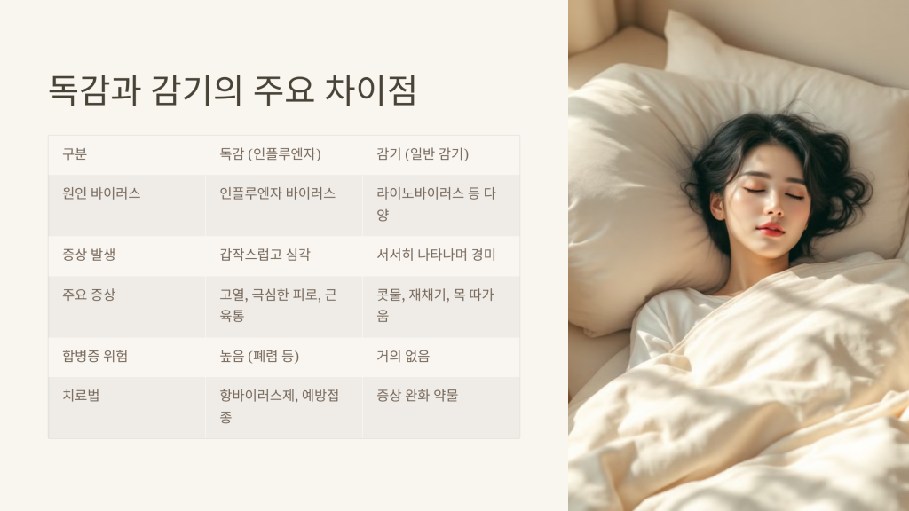 코로나는 후각·미각 상실이 두드러진 증상이며, 독감은 고열과 근육통이 강하게 나타납니다. 확진 여부는 PCR 검사 또는 신속항원검사로 확인 가능합니다.