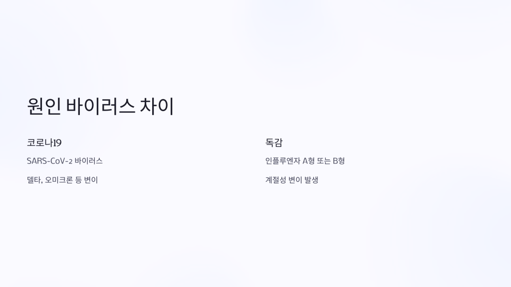 | 구분 | 코로나19 (COVID-19) | 독감 (인플루엔자) |
