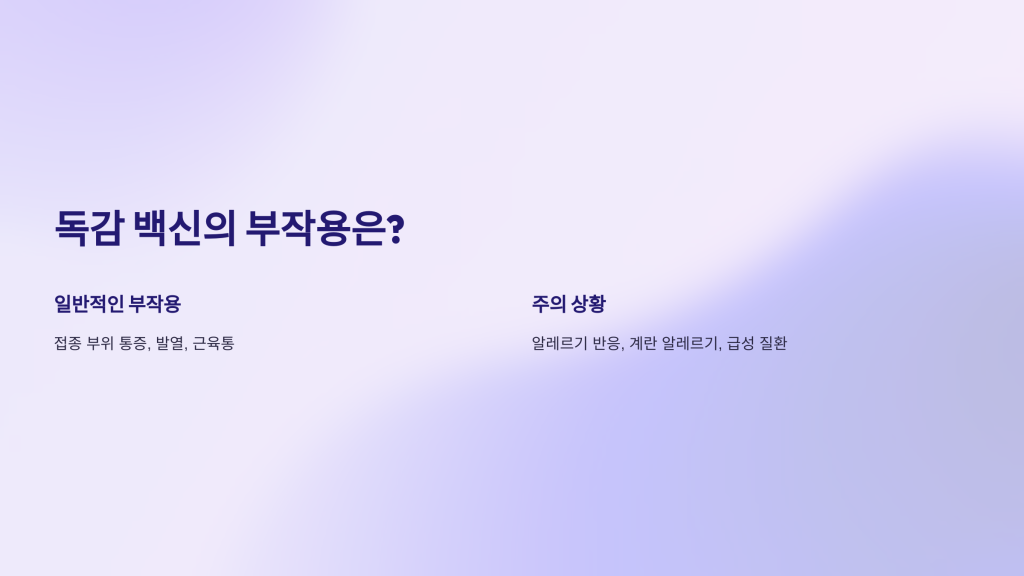 | 백신 | mRNA 백신 (화이자, 모더나), 바이러스 벡터 백신 등 | 4가 독감 백신 |
